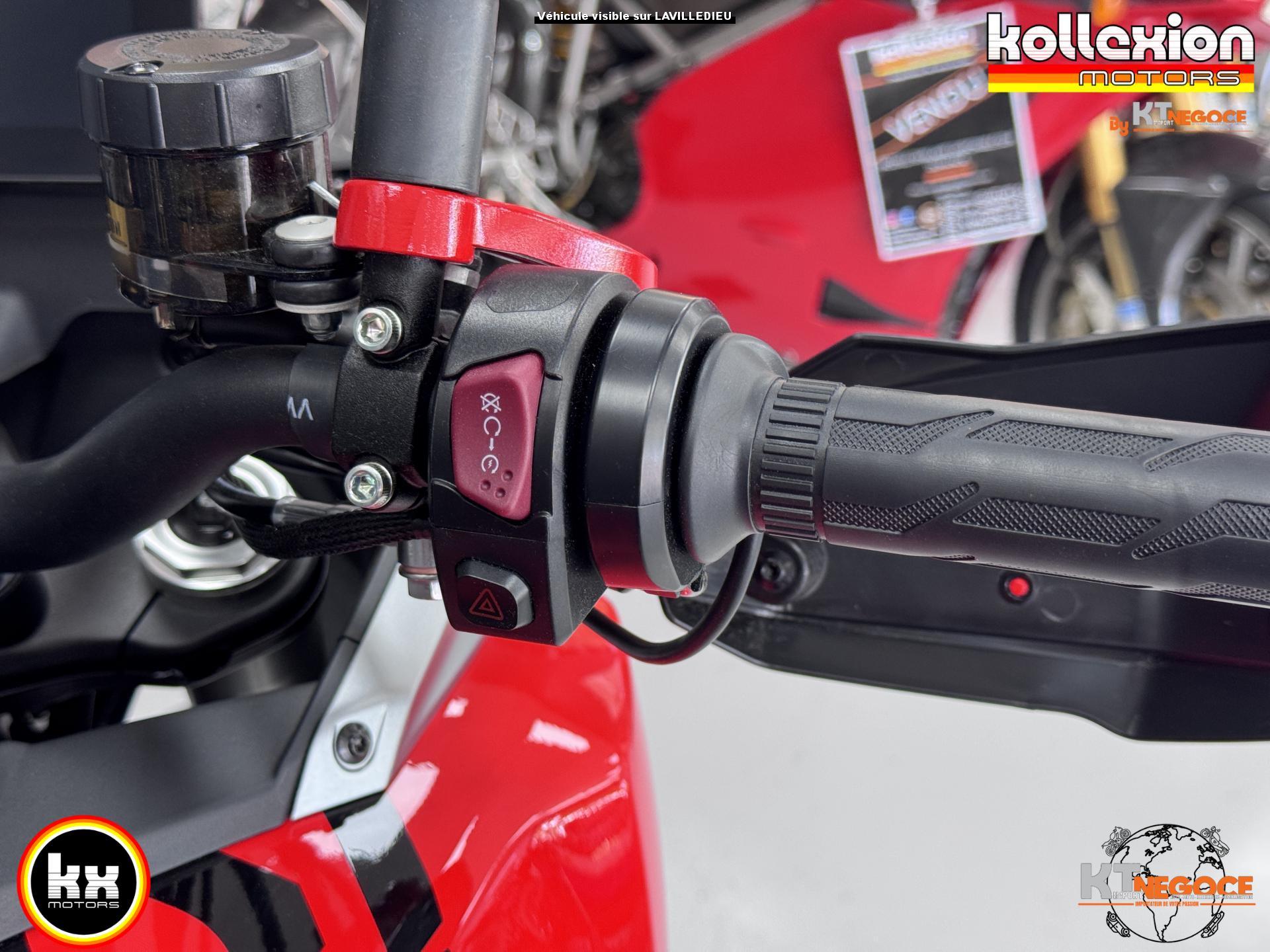 Le freinage avant comprend des étriers radiaux Brembo et un double disque de 320 mm (avec ABS), tandis que l'arrière dispose d'un étrier Brembo et d'un disque de 260 mm (avec ABS), garantissant une puissance de freinage exceptionnelle et une sécurité accrue.